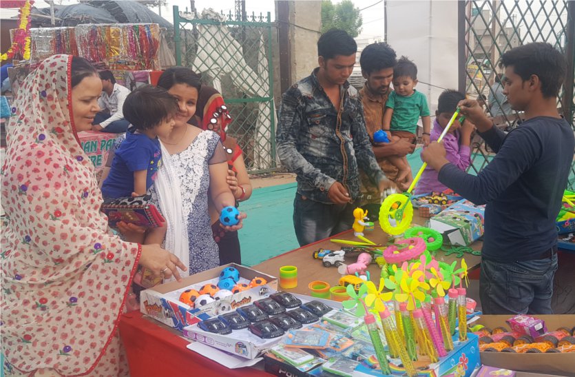 मकराना. खिलौनो की दुकान से खिलौने लेती महिलाएं।