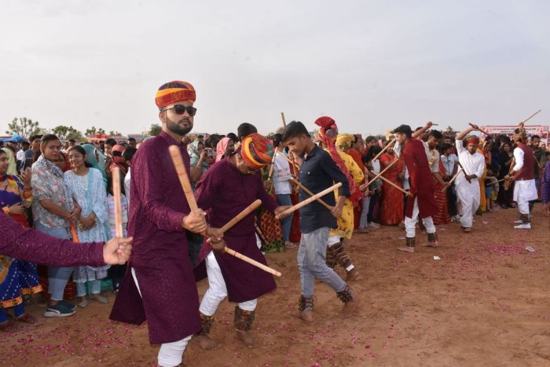 डांडिया उत्सव शुरू होने के साथ ही पूरा मेला डांडिया के रंग में रंगने लगा। राजस्थानी गीतों पर सधे कदमों से डांडिया खनकाते ग्रामीण उत्साहित नजर आ रहे थे। इस दौरान युवाओं ने पारंपरिक परिधान पहनकर डांडिया किया, वहीं ढोल की थाप, डांडिया की खनक व घुंघरू की आवाज उनको उत्साहित कर रही थी। सांस्कृतिक विशेषताओं को दर्शाती पारंपरिक वेशभूषा में सजे युवक व युवतियों के साथ बच्चे व बड़े भी डांडिया नृत्य करने में पीछे नहीं रहे। इस दौरान शहर से भी काफी संख्या में लोग डांडिया देखने पहुंचे।