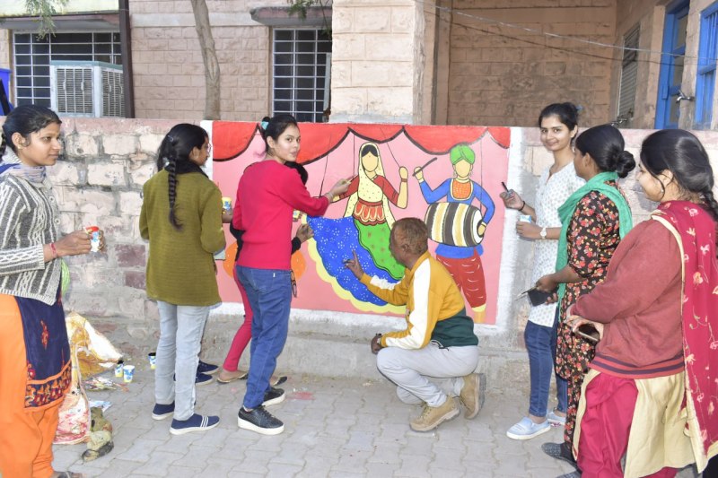 नागौर. शहर की मुख्य सड़क कलक्ट्रेट रोड पर इन दिनों शहर को सुंदर बनाने का सपना संजोए हाथ में ब्रेश लेकर पैंटिंग्स बनाने में मशगूल कॉलेज की स्वयंसेवक छात्राएं हर किसी के आकर्षण का केन्द्र बनी हुई हैं। सरकारी आवासों व कार्यालयों की दीवारों पर छात्राएं राजस्थानी संस्कृति को साकार करने वाले चित्र बना रही हैं।