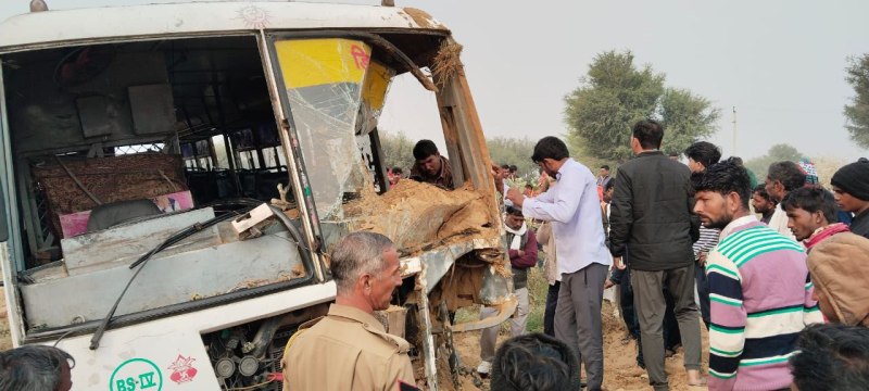 प्रत्यक्षदर्शियों ने बताया कि पाइपलाइन डालने के लिए सडक़ पर खोदी गई खाई पहले धुंध के कारण ड्राइवर को दिखाई नहीं दी, लेकिन जब नजदीक पहुंचा तो एकदम ब्रेक लगाए, जिसके कारण बस पलटकर रेत के धोरे में घुस गई।