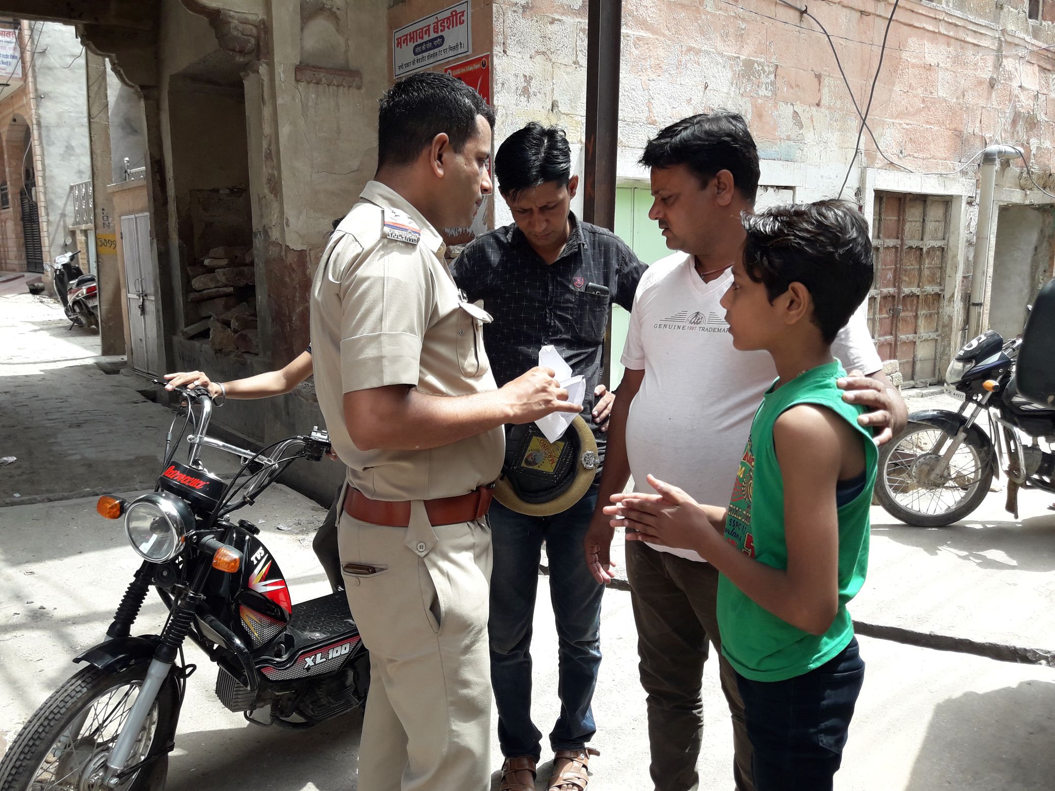 नागौर. शहर के लोढ़ों के चौक से सोमवार शाम को अपह्रत बालक करण सैन (12) पुत्र सुंदर लाल सैन के मामले में मंगलवार को कोतवाली पुलिस ने बालक व परिजनों के साथ चार घंटे तक कई रास्तों पर पूछताछ की। पुलिस ने कई सीसीटीवी कैमरों की जांच भी की। पुछताछ के बाद भी पुलिस को कोई सुराग नहीं लग पाया है। एसआई दीनदयाल के अनुसार पीडि़त बालक ने पुलिस को बताया कि वह घर से अपने पिता की दुकान जा रहा था इस बीच घर के पास से ही उसको बाइक सवार दो युवाओं ने गोद में उठाकर बोरी में डाल दिया और कांकरिया स्कूल के पास छोडकऱ भाग गए। जहां से बच्चे का अपहरण किया गया था वहां पर आस-पास के लोगों से पूछताछ की गई लेकिन कोई भी इस बारे में किसी प्रकार की जानकारी नहीं दे सका। गौरतलब है कि सोमवार शाम सात बजे दो मोटर साइकिल पर सवार चार युवक करण को ले गए। युवकों के उसे छोडकऱ भाग जाने के बाद वह जैसे-तैसे रोता हुआ पिता की दुकान पर गया और मामले के बारे में बताया। इसके बाद परिवार के लोगों ने देर रात पुलिस में रिपोर्ट दी थी।