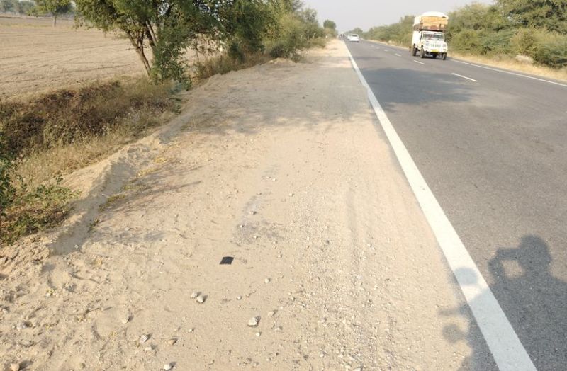 मेड़ता सिटी. राजमार्ग लेन किनारे बिखरी बजरी।