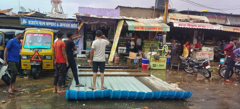 परबतसर में तूफानी बारिश में उड़ा दुकान के आगे लगा टिन शेड