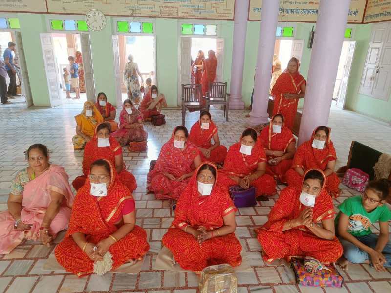 Devotees chanting on the occasion of Memorial Day at Jaimal Jain Poushdashala