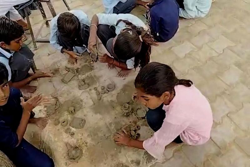 नागौर. खेल सामग्री के अभाव में मिट्टी के खिलौने बनाते बच्चे।