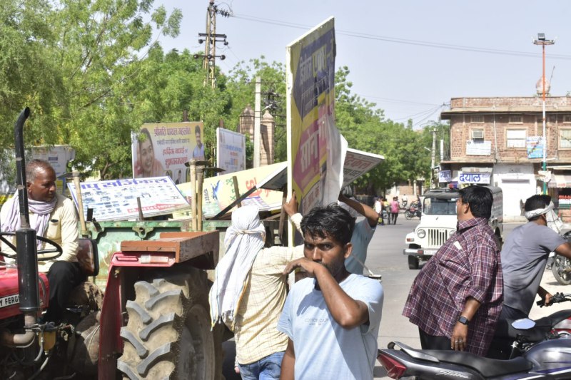 Nagaur. Municipal council team seizing sign board in front of old district hospital