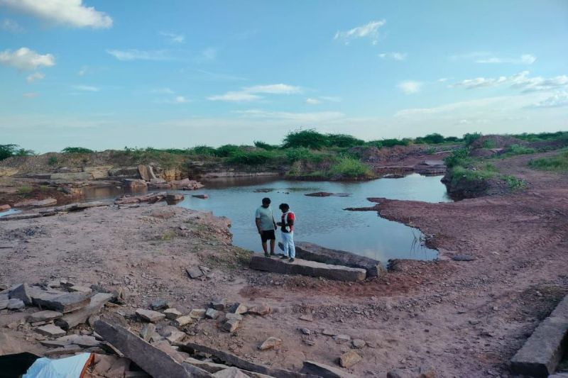 मेड़तासिटी. गांव गादेरी स्थित खदान में भरा पानी जहां हादसा हुआ।