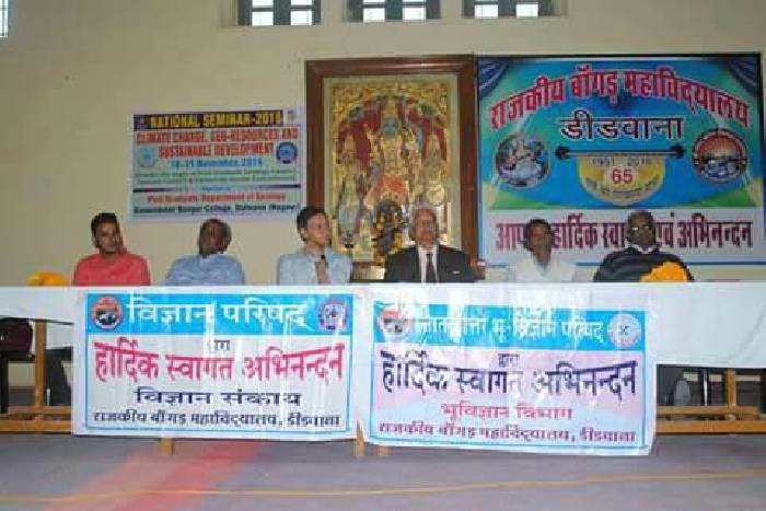 कालेज के भूविज्ञान विभाग के पूर्व में करीब ढाई दशक तक विभागाध्यक्ष रहे व सेवानिवृत प्राचार्य डॉ. एन. एम. खण्डेलवाल ने भूविज्ञान के क्षेत्र में रोजगार के अवसरों की चर्चा करते हुए राष्ट्र विकास में भूवैज्ञानिकों की भूमिका को महत्वपूर्ण बताया। कालेज प्राचार्य डॉ. प्रेमचंद ने भूसंसाधनों के अत्यधिक विदोहन से संसाधनों पर बढ़ते दबाव पर चिंता जताई और नए वैज्ञानिक अनुसंधान पर बल दिया। उपाचार्य डॉ. सी. पी. गौड़ ने पृथ्वी के वातावरण को शुद्ध रखने व संसाधनों के विवेकपूर्ण विदोहन का आह्वान किया। भूविज्ञान विभाग के विभागाध्यक्ष डॉ. अरूण व्यास ने पृथ्वी पर मानव, जीव व पादप जगत के लिए ग्लोबल वार्मिंग को बड़ा खतरा बताते हुए मानव की गतिविधियों के कारण हो रहे जलवायु परिवर्तन पर चिंता जाहिर की। सेमिनार में जेएनयू दिल्ली में शोधार्थी व व्याख्याता, डूंगर कालेज बीकानेर और सेंट विल्फ्रेड कालेज जयपुर के व्याख्याता व विद्यार्थियों, कुचामन कालेज के व्याख्याता के साथ केन्द्रीय भूजल बोर्ड, खान एवं भूविज्ञान विभाग राजस्थान के वैज्ञानिकों तथा बांगड़ कालेज के व्याख्याताओं व विद्यार्थियों ने सहभागिता कर अपने शोध पत्रों का वाचन किया। उन्होंने पावर पाइंट प्रजेंटेशन के साथ ओरल प्रस्तुतियों के अलावा पोस्टरों के माध्यम से भी विभिन्न विषयों की जानकारी दी। कला संकाय के अधिष्ठाता डॉ एन. आर. ढाका ने नेशनल सेमिनार की थीम पर चर्चा करते हुए संसाधनों के उपलब्धता व आपूर्ति में अंतर पर चिंता जताई। साथ ही इनके नए स्त्रोतों की खोज व अनुसंधान पर वैज्ञानिको को कार्य करने का आह्वान किया। सेमिनार के वाईस चैयरमेन डॉ. जहांगीर कुरैशी, कन्वीनर विजयपाल मीना व सचिव डॉ. अजय शर्मा ने सभी पत्रों को ज्ञानवर्धक बताया। समन्वयक पी. के. मीना व छात्रसंघ अध्यक्ष महेन्द्र जैवरिया ने सभी प्रतिभागियों का आभा ज्ञापित किया।