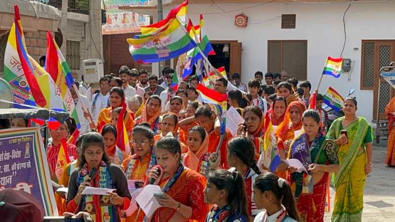 नागौर. विजयराज म. सा. की प्रेरण से आत्महत्या के रोकथाम के लिए रविवार को स्वाध्याय भवन से शोभायात्रा निकली। शोभायात्रा स्वाध्याय भवन से होते हुए बंसीवाला मंदिर तुलसी चौक, लोढो का चौक, कांच का मंदिर, दांती बाजार, बाजरवाड़ा, गांधीवाङी से होते हुए स्वाध्याय भवन वापस पहुंची। यात्रा में शामिल लोग आत्महत्या के प्रति रोकथाम करने वाले श्लोगन एवं माइक से लोगों को इस यात्रा के उद्देश्य के बारे में जानकारी देते हुए चल रहे थे। इस मौके पर लोगों से आत्महत्या नहीं करने के लिए शपथ पत्र भी भराए गए। कई जगहों पर यात्रा का स्वागत भी किया गया। इस मौके पर योगेश मुनि ने कहा कि जीवन में समय के अत्याधिक कठिन होने पर भी आत्महत्या सरीखा पाप नहीं करना चाहिए। कार्यक्रम में मुख्य रूप से वर्धमान स्थानकवासी जैन श्रावक संघ के अध्यक्ष कमल किशोर कोठारी, उपाध्यक्ष सुरेश ललवानी, अधिवक्ता दशरथमल सिंघवी, लोकेश कोठारी, टोडरमल सुराणा, राजू चौरडिया, प्रदीप डागा, राजेश कोठारी, सुभाष ललवानी, दिलीप ललवानी, तनय ललवानी, वर्धमान सुराणा, चेतन सुराणा, अमितचंद सुराणा, मनोज कांकरिया, शूरवीर सुराणा, महावीर भूरट, प्रकाश चंद बोहरा, शांतिलाल चौधरी, पदम तोलावत, स्वदेश बांठिया, कमल बांठिया, हनुमान दुग्गङ, निर्मल सुराणा, मयंक कोठारी, ललिता कोठारी, मधु ललवानी, नीतू सिंघवी, मोनिका बोथरा, बबीता पिंचा, सीमा सुराणा, मंजू नाहटा, शशिकांता चौरडिया आदि शामिल थीं।