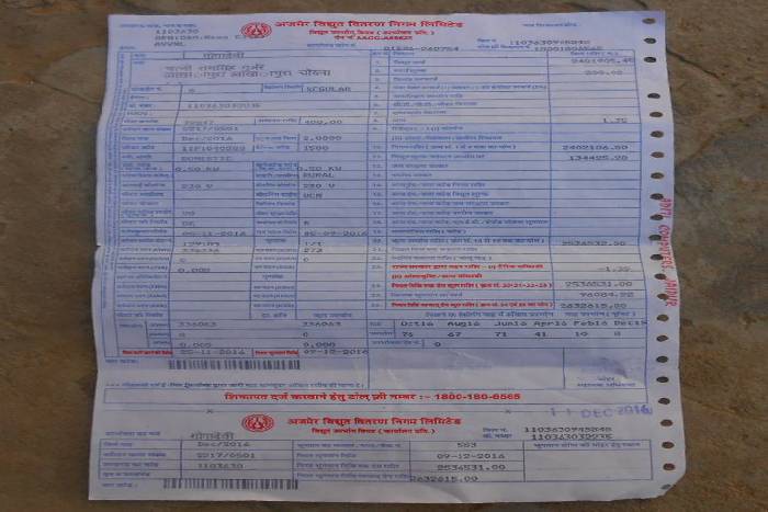 यह बिल छोटी-मोटी राशि का नहीं है, बल्कि पूरे 25 लाख बत्तीस हजार पांच सौ इकत्तीस रुपए का है। रामसिंह ने बताया कि अजमेर विद्युत वितरण निगम का कोई भी नुमाइन्दा उनकी परेशानी का हल करने को तैयार नहीं है। घरेलू बिजली कनेक्शन ले रखा है। उनके खाता नम्बर 2217-0501 है। उन्होंने बताया कि अक्टूबर 378 रुपए का बिल आया था और उसे जमा भी करवा दिया था, लेकिन दिसम्बर में 2536 531 रुपए का बिल आया है। रामसिंह ने बताया कि जब घर पर बिल आया तो एक बार तो देखकर भौंचक्का रहं गया था। बिल 25,36,531 रुपए का है और बिल को न भरने पर जुर्माने समेत बिल की राशि छब्बीस लाख बत्तीस हजार छह सौ पन्द्रह है। यह देखकर दिन का चैन और रात की नींद गायब हो गई है। मकान मालिक ने बताया कि घर में केवल टी.वी और बल्ब जलाता है। फिर भी इतना भारी भरकम बिल आ रहा है। जिससे परेशानी का सामना करना पड़ रहा है।