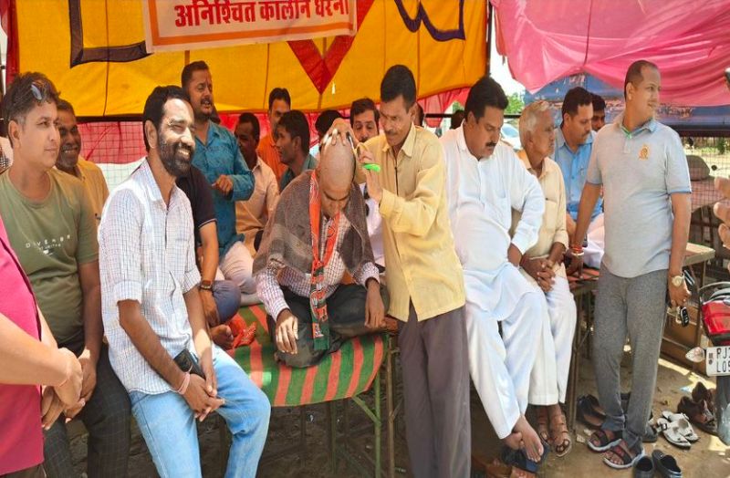 मूण्डन करवाकर अनशन शुरू मूण्डन करवाते राजेन्द्र मारवाल