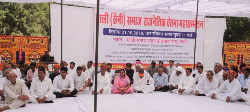 नागौर. आजादी के 70 साल बाद भी माली सैनी समाज को नागौर जिले की दस में से किसी भी विधानसभा में किसी भी राजनीतिक दल द्वारा प्रतिनिधित्व न दिए जाने पर समाज के लोगों ने कहा कि अब समाज उपेक्षा सहन नहीं करेगा। वक्ताओं ने सभी राजनीतिक दलों को चेतावनी दी कि यदि उनकी इसी प्रकार से उपेक्षा की जाती रही तो उनके पास सब प्रकार से विकल्प खुले हैं।