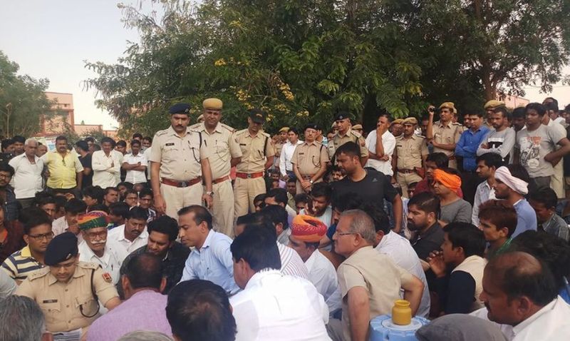अस्पताल परिसर में धरने में शामिल माली समाज के अध्यक्ष रामस्वरूप पंवार, पूर्व अध्यक्ष कृपाराम देवड़ा, पूर्व सभापति बिरदीचंद सांखला, चैनार सरपंच खींवसिंह सोलंकी, रामजस भाटी, कृषि मंडी व्यापार मंडल अध्यक्ष भोजराज सारस्वत सहित काफी संख्या में लोग उपस्थित रहे। परिजनों एवं माली समाज के लोगों ने पुलिस अधिकारियों को घेरते हुए कहा कि दोनों पक्षों के खिलाफ आपसी विवाद पिछले काफी समय से चल रहा है। कई बार मारपीट, फायरिंग जैसी घटनाएं हुई, इसके बावजूद पुलिस ने गंभीरता नहीं दिखाई।