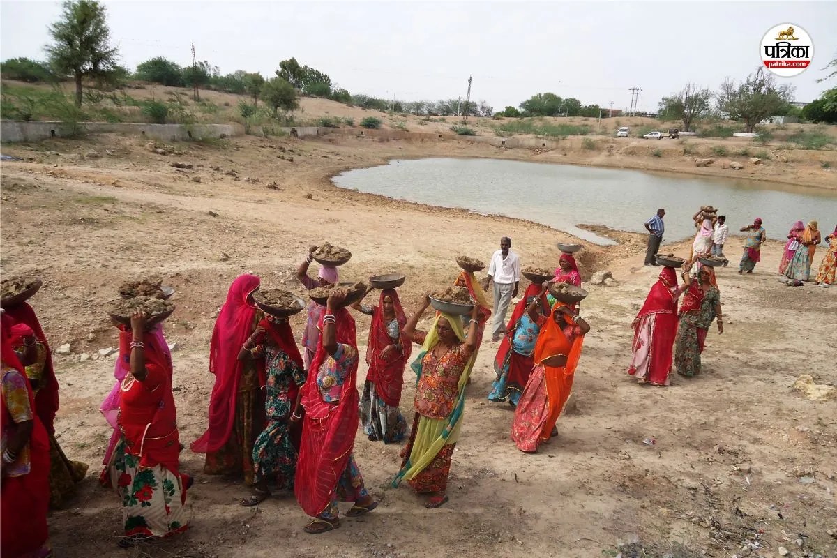 खींवसर में तालाब खुदाई कार्य पर लगे श्रमिक। फाइल फोटो पत्रिका