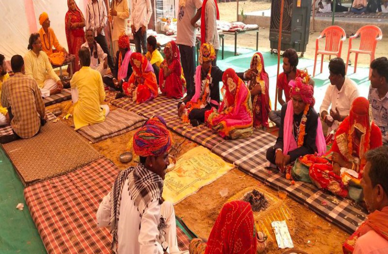 जानकारी के अनुसार ग्रामीणों ने नारसिंह भोपा की 22 वर्षीय धापुड़ी, 21 वर्षीय किरण व 19 वर्षीय सरोज का जोधपुर के बावड़ी गांव निवासी चेनाराम, भोमाराम व लक्की के साथ ब्याह कराया। नारसिंह भोपा की 6 वर्ष पहले एक सड़क दुर्घटना में मौत हो गई। टीम मिशन मानवता के प्रवक्ता राजेंद्र रेवाड़ ने बताया कि मौलासर में शुक्रवार को सामाजिक समरसता व अमीर-गरीब के बीच के अंतर को दूर करते हुए सकारात्मक दिशा में प्रेरणादायक उदाहरण पेश किया गया। शादी का यह आयोजन यहां डाबड़ा रोड स्थित पकोड़ा तालाब के पास सोहननाथ दास महाराज की बगीची में हुआ।