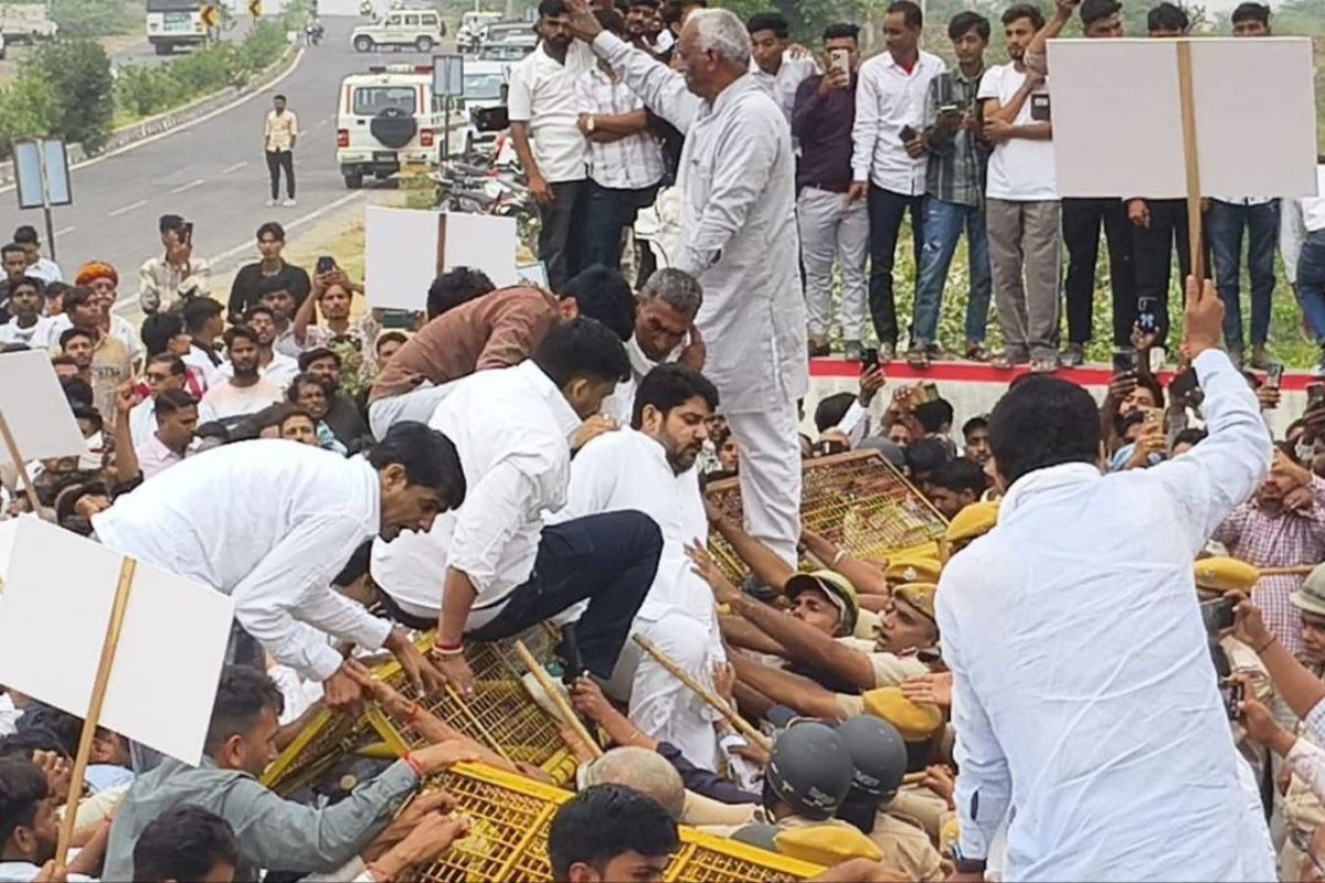 कस्टोडियन भूमि किसानों को आवंटित करने की मांग को लेकर सोमवार को कलक्टर कार्यालय का घेराव करने के लिए भारी भीड़ जुटाई गई थी। इस दौरान पुलिस और किसान नेता सभी आमने-सामने हो गए, बैरिकेडिंग को नीचे गिरा दिया गया था। प्रदर्शन में किसान नेता भागीरथ यादव सबसे पहले बैरिकेडिंग पर खड़े हो गए थे। प्रदर्शन करते हुए कलेक्टर कार्यालय में जबरन घुसने का प्रयास किया था। इस दौरान पूर्व विधायक चेतन डूडी, लाडनूं विधायक मुकेश भाकर, एसएफआई के नेता जगदीश गोदारा, सीकर सांसद अमराराम, पूर्व विधायक बलवान पूनिया भी बैरिकेडिंग पर चढ़ गए थे। इसी प्रदर्शन के दौरान लाडनूं विधायक मुकेश भाकर का पैर टूटा था।