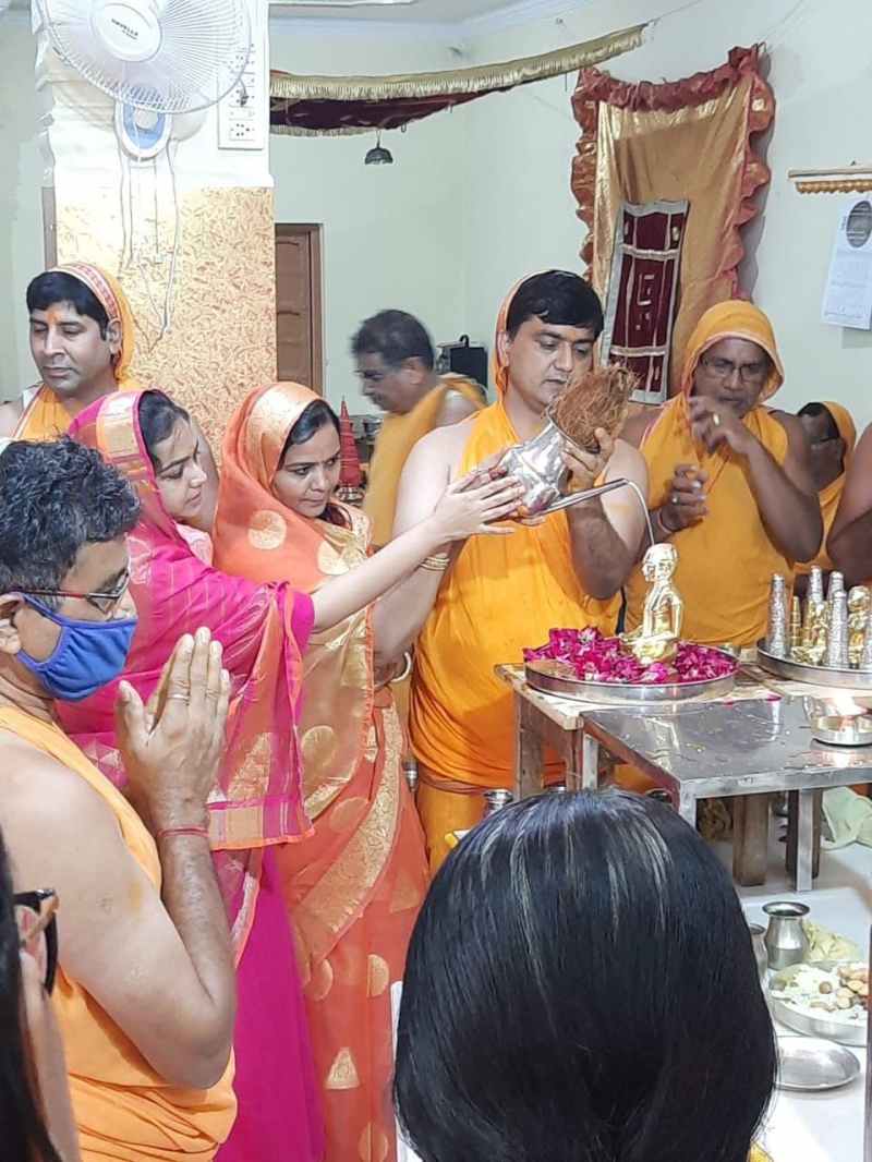Devotees worshiping God in temples on behalf of Sakal Digambar Jain Samaj