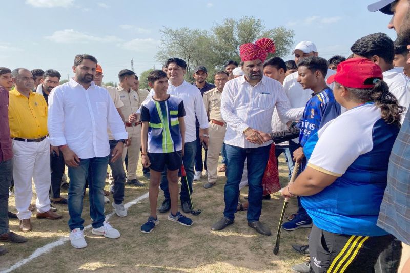 हॉकी प्रतियोगिता की शुरुआत कराते नागौर सांसद हनुमान बेनीवाल