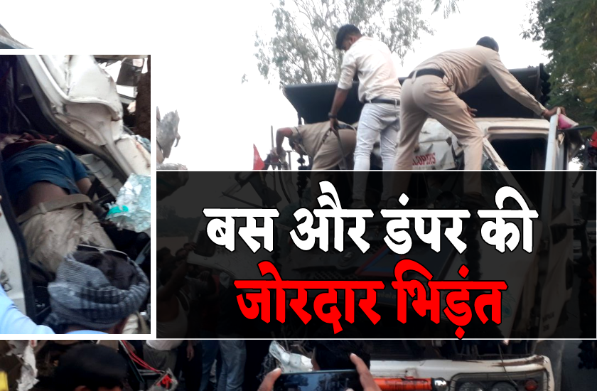 बस और डंपर की जोरदार भिड़ंत में 40 यात्री घायल, कैबिन में फंसे ड्राइवर की JCB से बॉडी तोड़कर निकाला