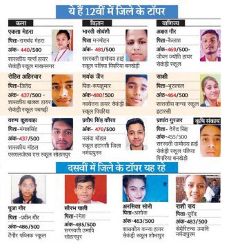 01.प्रशांत गुरजर पिता देवेंद्र सिंह - 455/500 सरस्वती ग्रामोदय हाई सेकेंड्री स्कूल पलिया पिपरिया बनखेड़ी