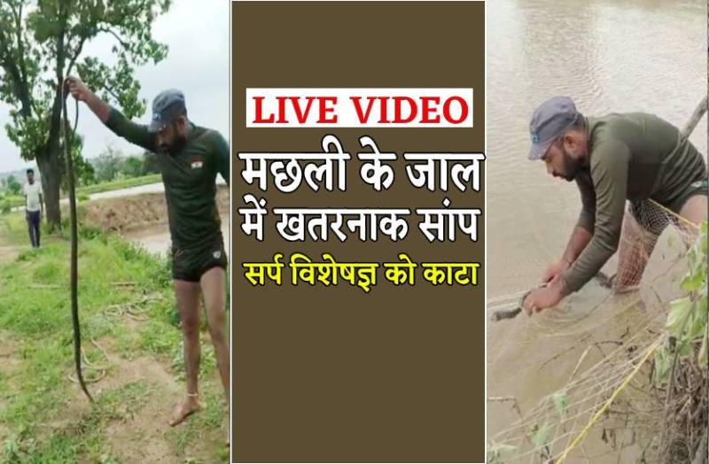 Snake Attack : मछली पकड़ने के लिए जो जाल तालाब में मछुआरे ने डाला था उसमें जब मछली की जगह एक बड़ा खतरनाक सांप फंस गया तो मछुआरे की सांसें फूल गईं। जाल में सांप को फंसा देख मछुआरे ने जाल को छोड़ा और स्नेक कैचर को फोन लगाया। सूचना मिलते ही स्नेक कैचर मौके पर पहुंचा और सांप को सुरक्षित जाल से बाहर निकाला हालांकि इस दौरान सांप ने स्नेक कैचर के हाथ पर डस लिया।