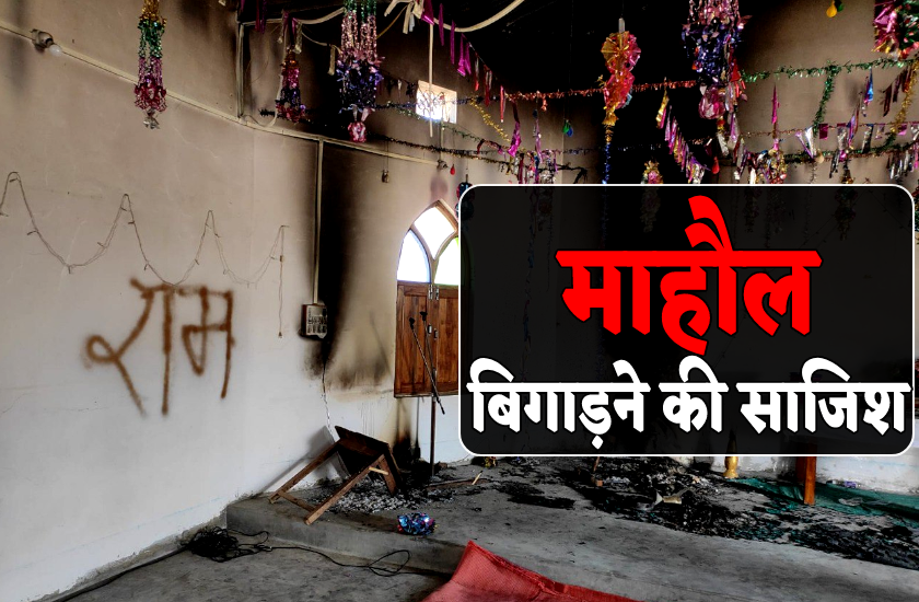 शरारती तत्वों की शर्मनाक करतूत, धार्मिक स्थल में घुसकर जलाया सामान
