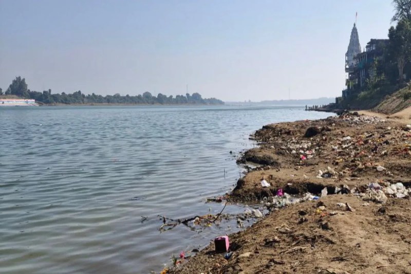 नर्मदा नदी में प्रदूषण लगातार बढ़ रहा है। बढ़ता प्रदूषण चिंता का विषय है. (photo patrika)