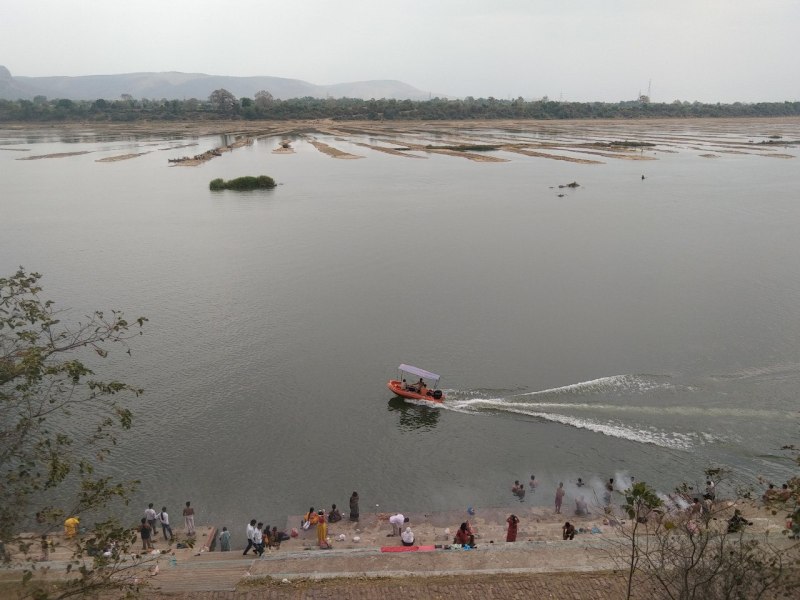 यहां नर्मदा की धार को तोड़कर-बांधकर रेतीले रास्ते बना लिए। टै्रक्टर मशीन से यहां पानी के अंदर से रेत उलीची जाकर छोटी नावों में भरकर ढोई जा रही थी। करीब दो दर्जन लोग साफ दिखाई दे रहे । टै्रक्टर-ट्रॉली से भी रेत का अवैध परिवहन किया जा रहा था। नर्मदापुरम की वोट में पुलिस-होमगार्ड के जवान भी गश्त कर रहे थे, लेकिन उनकी हिम्मत भी पकडऩे की नहीं हो सकी। नर्मदा का आधा पाट ही सूख गया है। पानी की धार भी बदल गई ।