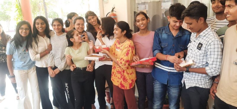 -नाचकर और एक दूसरे मिठाई खिलाकर छात्र-छात्राओं ने मनाई खुशियां