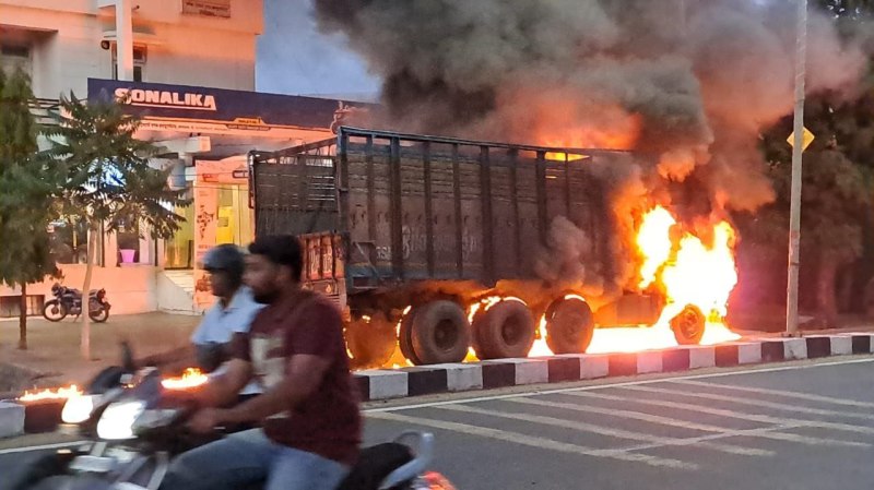 नर्मदापुरम रसूलिया हाईवे पर चलते ट्रक में लगी आग, चालक की सतर्कता से बची तीन जिंदगियां