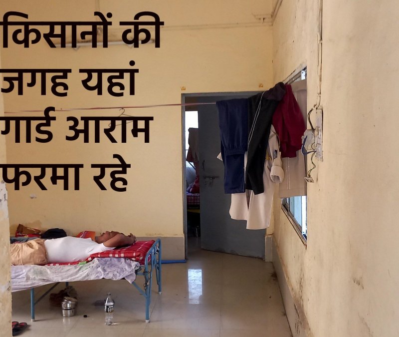 मंडी में किसानों के रूकने-ठहरने और आराम के लिए 17 साल पहले वर्ष 2005 में कृषक विश्राम भवन बना था। इसके शुभारंभ से लेकर 2019 तक इसमें रबी-खरीफ की खरीदी के दौरान किसान भवन का उपयोग करते थे। इस भवन में एक हॉल, एक कमरा सहित लेटबॉथ की सुविधा है, लेकिन 2019 के बाद से इसमें खनिज वाहनों की निगरानी करने वाले सशस्त्र गार्डों का आवास बन गया। इन्हें तत्कालीन एसडीएम व ओआईसी ने कृषक भवन में बारिश के कारण रूकवाया था, लेकिन तब से लेकर आज तक ये सुरक्षा गार्ड यहीं रह रहे हैं।