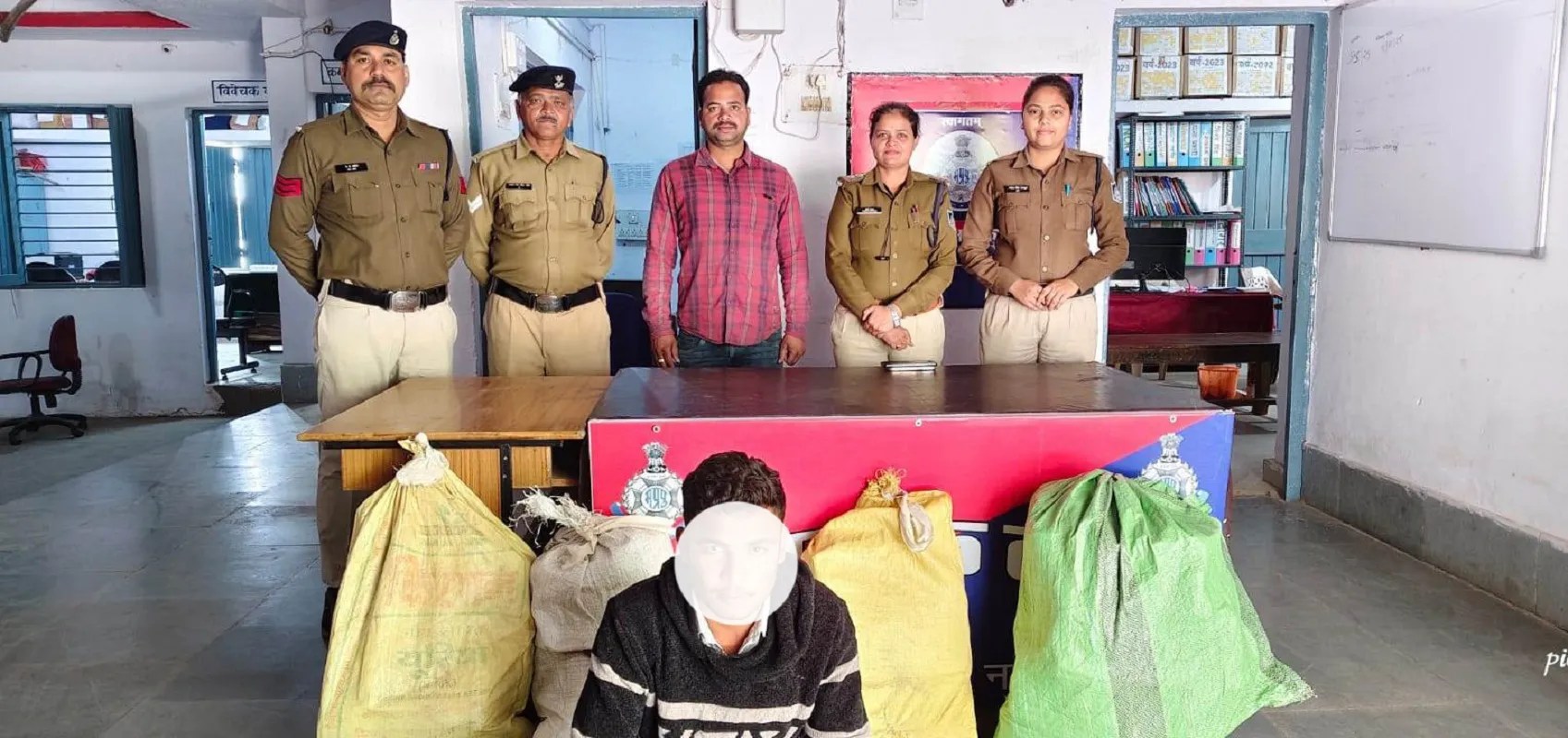 बरामद शराब व आरोपी के साथ ठेमी पुलिस।