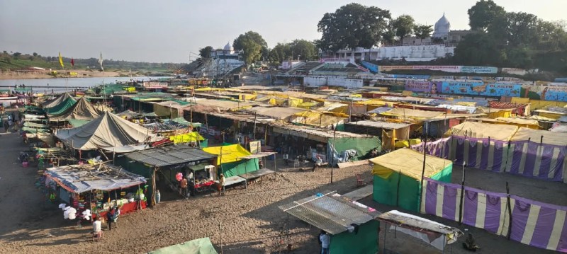 रेतघाट का मेला स्थल जहां बड़ी संख्या में दुकानें लग गई हैं।