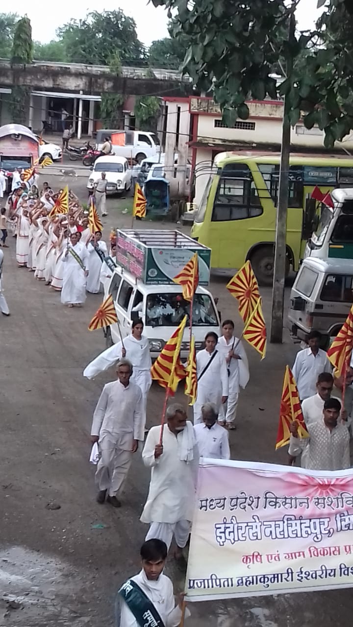 नरङ्क्षसहपुर/डोभी- भारत एक कृषि प्रधान देश है जहाँ पर लोग खेती पर अधिक निर्भर है परन्तु आज किसान खेती करने से डरने लगा है,उत्पादन का उचित मूल्य न मिलना,प्राकृतिक आपदा,असामान्य मौसम जैसे अनेक कारणों से किसान परेशान है वही अत्याधिक मात्रा में कीटनाशक दवाओं, रासायनिक खादों का उपयोग अनेक प्रकार की बीमारियों को जन्म दे रहे है, युवा पीढ़ी खेती करने से दूर भाग रही है,लक्ष्य विहीन होकर लोग नशे की ओर आकर्षित हो रहे है जो भविष्य के लिए घातक है। उक्त विचार मंगल भवन डोभी मे प्रजापिता ब्रह्माकुमारी ईश्वरीय विश्वविद्यालय द्वारा दिव्य किसान सेवा रथ के आगमन पर कुसुम दीदी ने व्यक्त किए। उन्होंने कहा ऐसे रासायनिक खादों के बुरे प्रभाव से बचने के लिए शाश्वत यौगिक जैविक खेती की जाना चाहिए। इसमें किसान अपनी शुद्ध फसल तैयार कर सकता है जिसमें भरपूर मात्रा में पोषक तत्व होते हैं। उन्होंने आगे बताया कि दिव्य किसान रथ प्रदेश के अलग-अलग क्षेत्रों में एक माह तक भ्रमण करेगा। जिसका उद्देश्य किसानों को व्यसनों से मुक्त करना, खेती की लागत कम करने के उपाय बताना आदि। इसके पूर्व दिव्य किसान रथ के डोभी पहुंचने पर ग्राम के हाईस्कूल से मंगल भवन तक भव्य रैली निकाली गई। इस मौके पर प्रजापिता ब्रह्माकुमारी ईश्वरीय विश्वविद्यालय शाखा डोभी की बहनों द्वारा जैविक खेती पर आधारित लघु नाटक प्रस्तुत किया। जिसमें जानकी दीदी, बंदना पंडा, जीजाबाई पटैल, संगीता पटेल नरसिंहपुर से अमित,राहुल,दीक्षा, प्रतिक्षा,शुभि,पलक,दीपाली ने अपनी प्रस्तुत दी। इस कार्यक्रम में विशेष रूप से संरपच जितेंद्र पटैल,चौधरी विश्वनाथ सिंह,केवल सिंह मातावाले, गेदालाल बाठा,अमरसिंह पीपरावारे, बलराम पटैल आदि का सहयोग रहा।इस मौके पर प्रजापिता ब्रह्माकुमारी ईश्वरीय विश्वविद्यालय शाखा डोभी की बहनों द्वारा जैविक खेती पर आधारित लघु नाटक प्रस्तुत किया। जिसमें जानकी दीदी, बंदना पंडा, जीजाबाई पटैल, संगीता पटेल नरसिंहपुर से अमित,राहुल,दीक्षा, प्रतिक्षा,शुभि,पलक,दीपाली ने अपनी प्रस्तुत दी। इस कार्यक्रम में विशेष रूप से संरपच जितेंद्र पटैल,चौधरी विश्वनाथ सिंह,केवल सिंह मातावाले, गेदालाल बाठा,अमरसिंह पीपरावारे, बलराम पटैल आदि का सहयोग रहा।