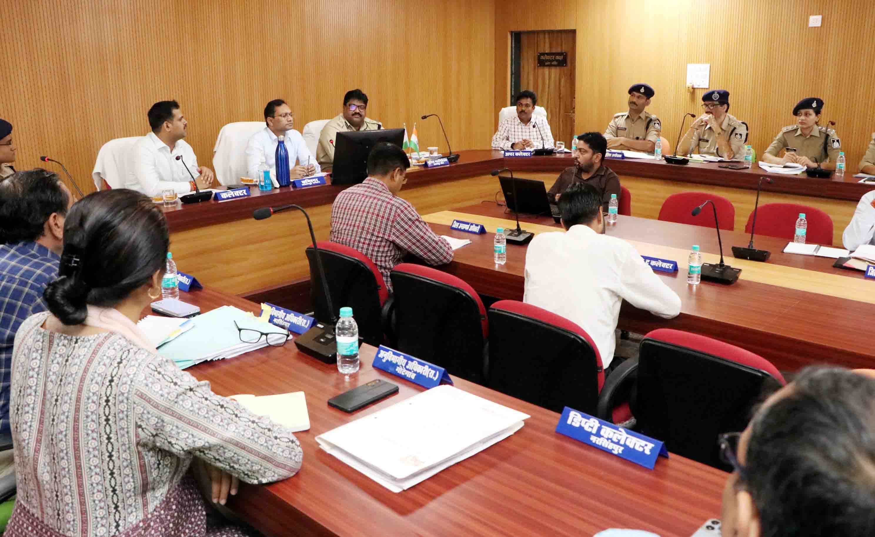नरसिंहपुर.. कमिश्नर जबलपुर बी. चंद्रशेखर ने आईजी जबलपुर उमेश जोगा के साथ जिले में शांति एवं कानून व्यवस्था की समीक्षा बुधवार को कलेक्ट्रेट सभाकक्ष में की और आवश्यक निर्देश दिये। बैठक में कलेक्टर रोहित सिंह, पुलिस अधीक्षक विपुल श्रीवास्तव और अन्य अधिकारी मौजूद थे।