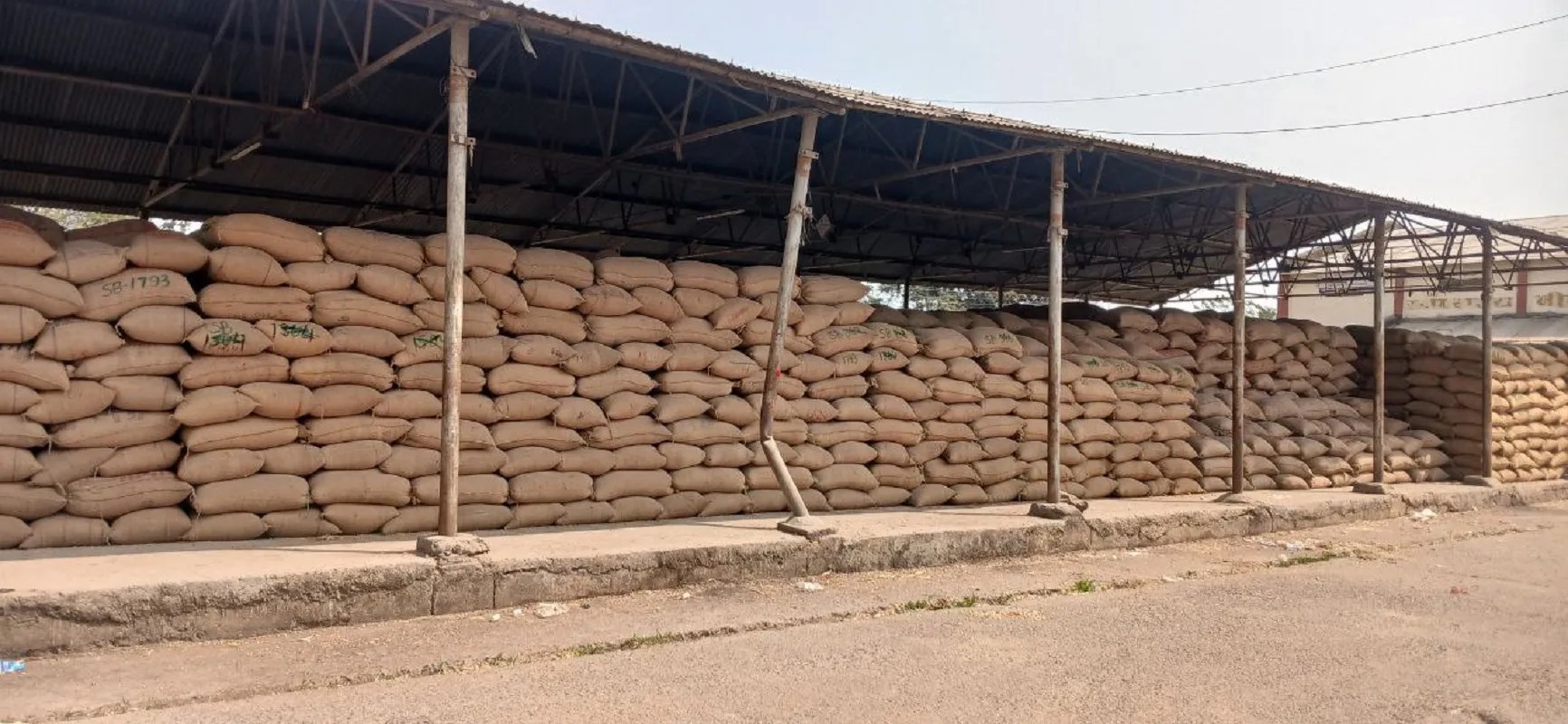 मंडी के शेड में रखा अनाज।