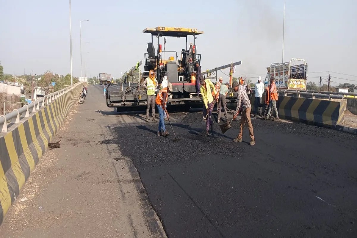 नरसिंहपुर बायपास पर गड्ढों को भरने चल रहा डामरीकरण