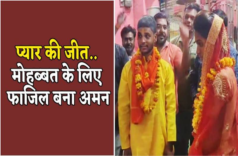 पूरा मामला कुछ इस तरह है कि नरसिंहपुर के आमगांव की रहने वाली युवती सोनल राय से चीचली के रहने वाले मुस्लिम युवक फाजिल को प्यार हो गया। फाजिल ने प्यार का इजहार किया तो सोनल ने भी हामी भर दी लेकिन दोनों की शादी के बीच दोनों का अलग अलग धर्म का होना बड़ी मुश्किल था। इसी बीच दोनों ने शादी के लिए कलेक्ट्रेट में आवेदन कर दिया। लेकिन जैसे ही ये आवेदन सोशल मीडिया पर वायरल हुआ तो हंगामा मचना शुरु हो गया। हिंदू संगठनों ने इसका विरोध करना शुरु कर दिया। एक तरफ तेजी से बढ़ रहा विरोध था और दूसरी तरफ प्यार...इसी बीच फाजिल ने फैसला लिया कि वो प्यार की खातिर हिंदू धर्म अपनाएगा। फाजिल ने हिंदू संगठन के कार्यकर्ताओं व नेताओं से संपर्क किया और फिर हिंदू धर्म अपनाकर अमन बनकर सोनाली के साथ करेली के राम मंदिर में सात फेरे लिए।