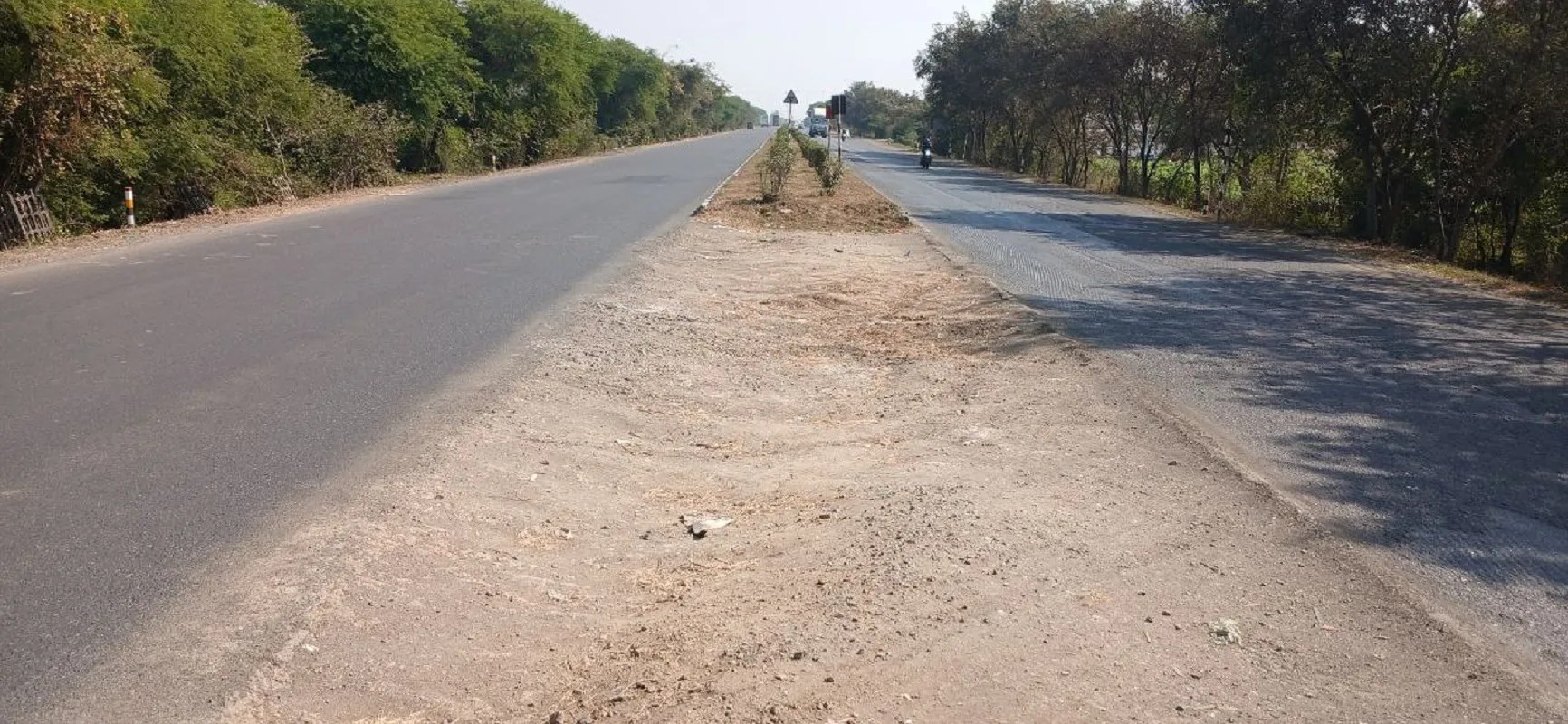 हाइवे पर लंबे समय से टूटा पड़ा डिवाइडर।