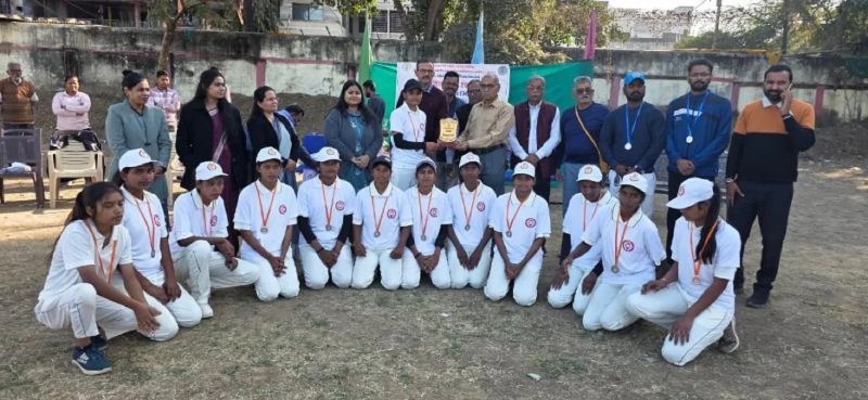 A girls' cricket match नरसिंहपुर. पीएमश्री पीजी कॉलेज नरसिंहपुर स्थित मैदान में बेटी बचाओ- बेटी पढ़ाओ योजना के तहत बालिका क्रिकेट मैच का आयोजन किया गया। मैच के दौरान शासकीय पीजी कॉलेज तेंदूखेड़ा टीम की कप्तान मोनिका पटेल ने टॉस जीतकर बैटिंग करने का निर्णय लिया। पहले बैटिंग करते हुए निर्धारित 12 ओवर में 47 रन बनाए। शासकीय पीएमश्री पीजी कॉलेज नरसिंहपुर की टीम ने बैटिंग करते हुए बिना विकेट खोए मात्र 5.3 ओवर 48 रन बनाकर जीत हासिल की। मैच के पश्चात अतिथियों ने सर्वाधिक 29 रन बनाने वाली शिवानी धुर्वे को मैन ऑफ द मैच ट्रॉफी, उपविजेता टीम को सिल्वर मेडल एवं कप्तान मोनिका पटेल को ट्राफी, पीजी कॉलेज नरसिंहपुर की विजेता टीम को गोल्डन मेडल व टीम की कप्तान आरज़ू कुर्मी को ट्राफी प्रदान की। अतिथि डॉ. अनंत दुबे, प्रमेश शंकर शर्मा, जिला कार्यक्रम अधिकारी महिला एवं बाल विकास नरसिंहपुर राधेश्याम वर्मा, प्राचार्य डॉ. आरबी सिंह, सहायक संचालक महिला एवं बाल विकास प्रांजलि मर्सकोले, स्पोर्ट ऑफिसर अर्पित सक्सेना, भानु प्रताप प्रजापति, बाल संरक्षण अधिकारी सौनिध्य सराठे सहित अन्य जनप्रतिनिधि, स्पोट्र्स और अन्य अधिकारी- कर्मचारियों ने जिले से बाल विवाह मिटाना है आदि स्लोगन से बाल विवाह मुक्त व बेटी बचाओ- बेटी पढ़ाओ का संदेश दिया।