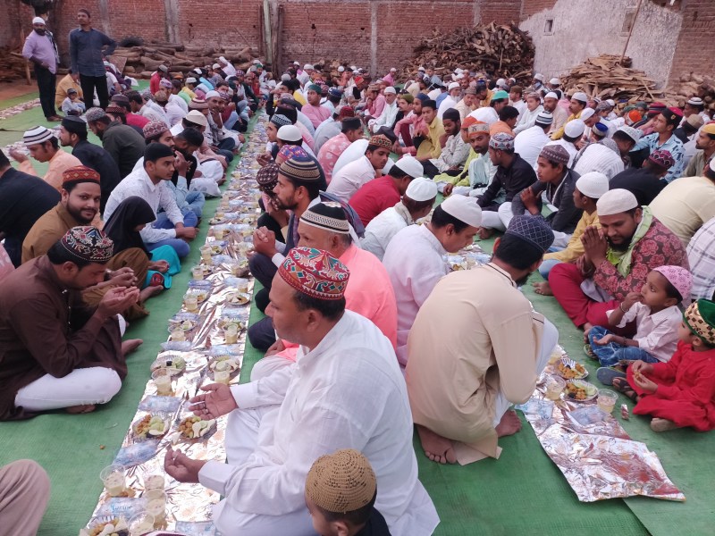 नरसिंहपुर. रमजान के पवित्र माह में मुसलमान शबाब पुण्य की नीयत से जहां रमजान के रोजे रखना, नमाज कायम करना, पवित्र किताब कुरान की तिलावत करना, गरीबों और मुहताजों को सदका, जकात और खैरात आर्थिक दान करने जैसे काम अंजाम देता है तो वहीं इसी शबाब की प्राप्ति के लिए रोजेदारों का रोजा खुलवाना खाना खिलाना इस्लामी दृष्टिकोण से रोजा इफ्तार कहलाता है। सांकल रोड, वर्धमान सिटी स्थित नैमत अल कौशर मस्जिद में रोजा इफ्तार का एहतेमाम किया गया। जिसमें इस मौके पर शहर के तमाम स्थानों से अधिक से अधिक लोगों ने शिरकत की। रोजा इफ्तार के बाद सभी ने मस्जिद में नमाज पढ़ी और अमन चैन के लिए दुआ मांगी। नमाज के बाद खाने का इंतेजामात किया गया था जिसमें सभी लोगों ने हिस्सा लिया।