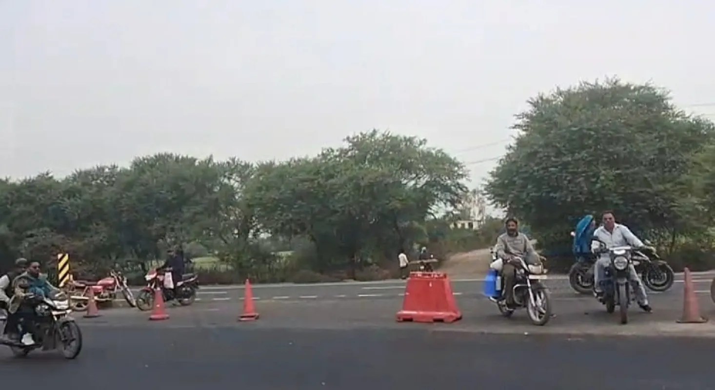 हाइवे पर चल रहे कार्य के दौरान निकलते वाहन चालक।