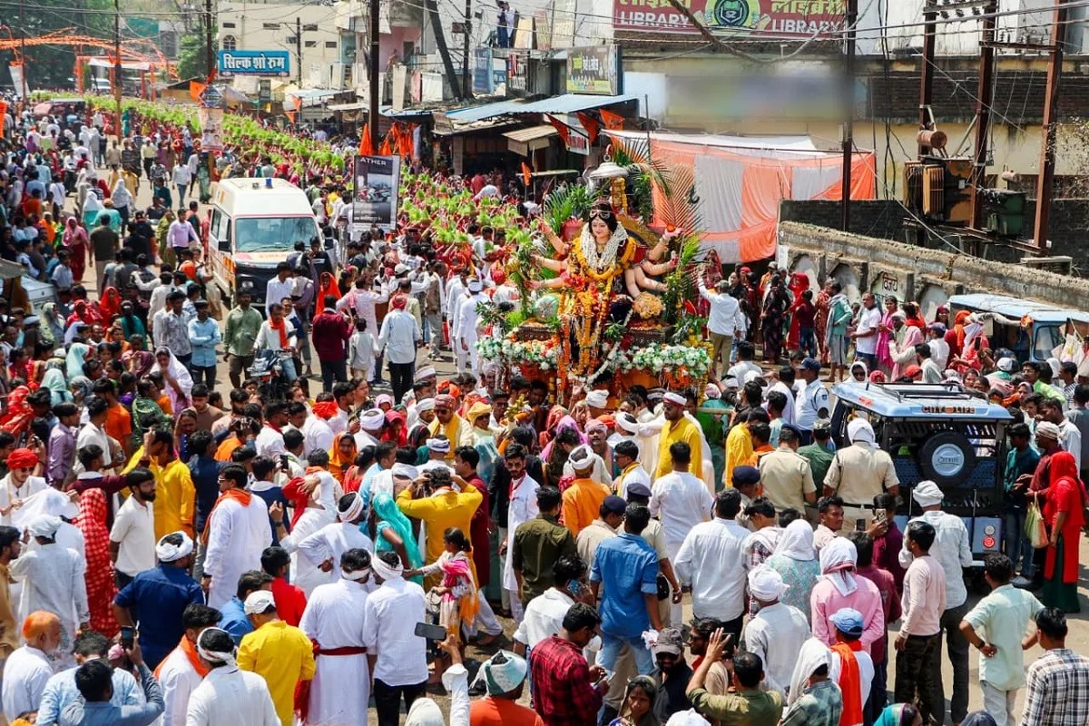 बुधवार को देवी प्रतिमा के साथ 801 घट-कलश जवारों की भव्य शोभायात्रा में शामिल होने जनसैलाब उमड़ा।