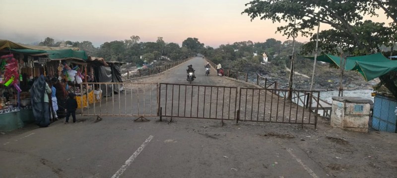 stopped on the ancient bridge in Satdhara नरसिंहपुर. जिले के प्रसिद्ध नर्मदा क्षेत्र सतधारा में बने प्राचीन पुल से वाहनों की आवाजाही पूरी तरह बंद कर दी गई है। यह प्रतिबंध शक्रवार से लागू कर दिया गया है और आगामी मेला अवधि के दौरान भी पुल से किसी भी प्रकार के वाहनों का आवागमन नहीं हो सकेगा। श्रद्धालु अब केवल पैदल ही निकलेंगे।