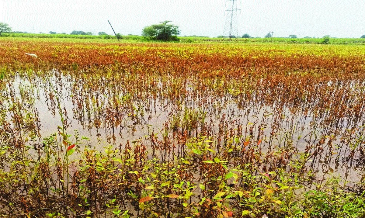 &सोयाबीन की फसल पूरी तरह से पककर तैयार खेत में खड़ी है। लेकिन दो दिन पहले की बारिश ने सब खराब कर दिया। अब खेतों में पानी भरा है। इससे न तो कटाई कर पा रहे हैं और न ही फसल को बचा पा रहे हैं। लगभग ८० प्रतिशत तक खराब हो चुकी है। अरहर में पनसूखा की शिकायत है।