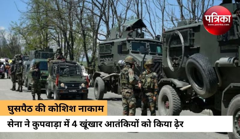 जवानों ने एक सप्ताह में घुसपैठ की यह दूसरी बड़ी कोशिश नाकाम की गई है। यह मुठभेड़ कुपवाड़ा के मच्छल सेक्टर में नियंत्रण रेखा एलओसी के करीब हुई। पुलिस ने बताया कि आतंकवादी पीओके से भारतीय सीमा में घुसपैठ करने की कोशिश कर रहे थे। जवानों ने पहले आतंकियों को चेतावनी दी, इसके जवाब में उन्होंने गोलीबारी शुरू कर दी। फिर मुठभेड़ शुरू हो गई और सुरक्षाबलों ने चार आतंकियों को मार गिराया।