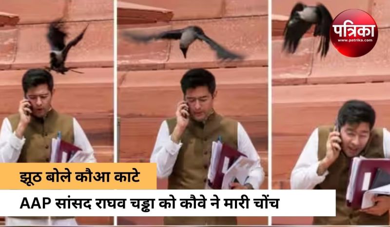 आम आदमी पार्टी के राज्यसभा सांसद राघव चड्ढा बुधवार को मानसून सत्र में हिस्सा लेने के लिए संसद पहुंचे। इस दौरान संसद परिसर राघव चड्ढा को एक कौवे ने हमला कर दिया है। आप नेता राघव को कौआ चोंच मारने लगा। इस घटना की फोटो सोशल मीडिया पर खूब वायरल हो रही है। वायरल तस्वीरों में देखा जा सकता है कि आप सांसद राघव चड्ढा फोन पर बात कर रहे है तभी एक कौआ उन पर हमला कर देता है। इसके बाद वे कौवे के हमले से बचते हुए नजर आ रहे है। इस फोटो को लेकर भारतीय जनता पार्टी ने आप नेता पर तंज कसा है। हालांकि इस घटना में उनको कोई चोट नहीं पहुंची है।