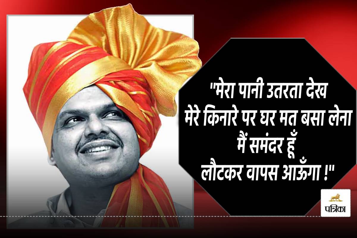 2019 के चुनावों में भाजपा के निराशाजनक प्रदर्शन के बाद रिकॉर्ड की गई क्लिप में, फडणवीस को यह कहते हुए सुना जा सकता है, “मेरा पानी उतरता देख मेरे किनारे पर घर मत बनाओ। मैं सागर हूँ। मैं वापस आऊँगा।” यह भविष्यवाणी वाला कथन अब राज्य में भाजपा के प्रमुख चेहरे के रूप में उनकी वापसी के साथ प्रतिध्वनित होता है।