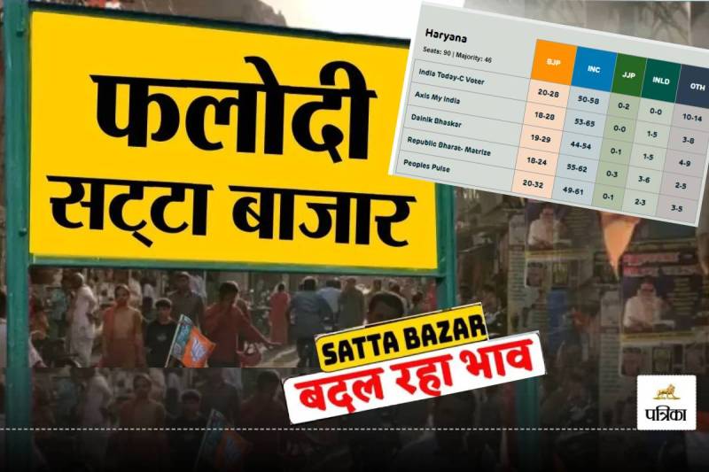 Phalodi Satta Bazar after Haryana Exit Poll: हरियाणा विधानसभा चुनाव की वोटिंग समाप्त हो चुकी है, और विभिन्न चैनल्स और सर्वे एजेंसियों ने अपने एग्जिट पोल के अनुमान प्रस्तुत कर दिए हैं। अधिकांश सर्वे एजेंसियों का मानना है कि इस बार राज्य में कांग्रेस की सरकार बन सकती है। इसके साथ ही लोग यह जानने में भी रुचि ले रहे हैं कि फलोदी सट्टा बाजार हरियाणा के चुनावों के बारे में क्या सोचता है।