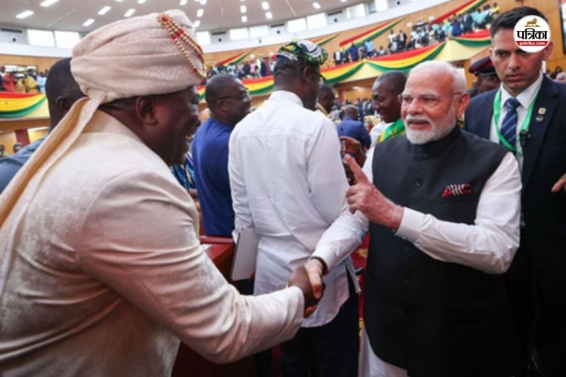 घाना में प्रधानमंत्री नरेंद्र मोदी का शानदार स्वागत हुआ। इस दौरान, अफ्रीकी सांसदों ने भारतीय पोशाक पहनकर सांस्कृतिक एकता और सम्मान का प्रदर्शन किया। पीएम मोदी के ऐतिहासिक भाषण के समय घाना की संसद में दो सांसद भारतीय परिधानों में दिखे, जो भारत और उसकी संस्कृति के प्रति उनके लगाव का प्रतीक था।